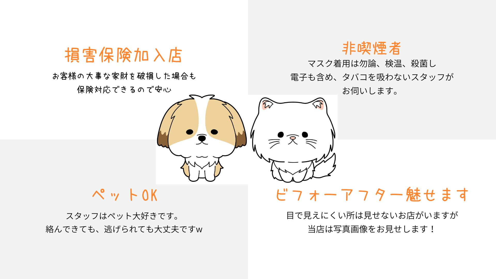 クリーニング後に異変があった場合も責任を持って対応させて頂きます。
